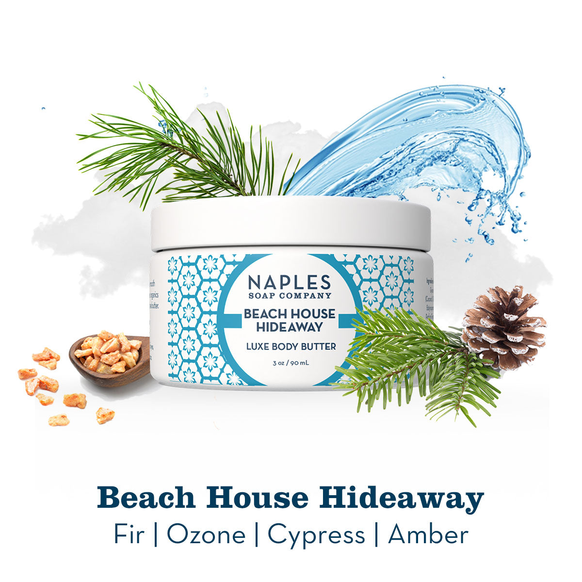 Breathe in the calming blend of fir, fresh ozone, and warm amber with Beach House Hideaway Body Butter. Enriched with organic sunflower seed oil, cocoa butter, and shea butter, it melts into skin for deep hydration and silky softness.